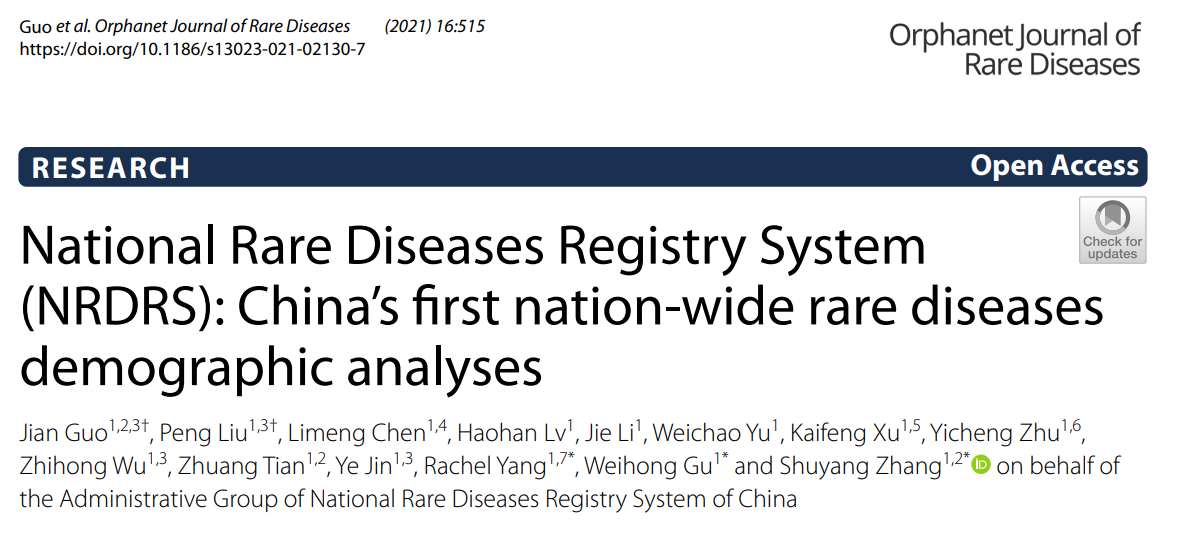 国家罕见病登记系统(NRDRS):中国首个全国性罕见病人口统计分析