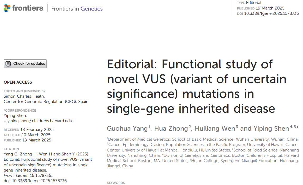 沈亦平教授&杨国华教授《Frontiers in Genetics》社论:解密遗传病基因VUS突变的功能,破解遗传密码最后一公里